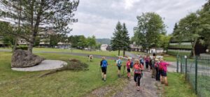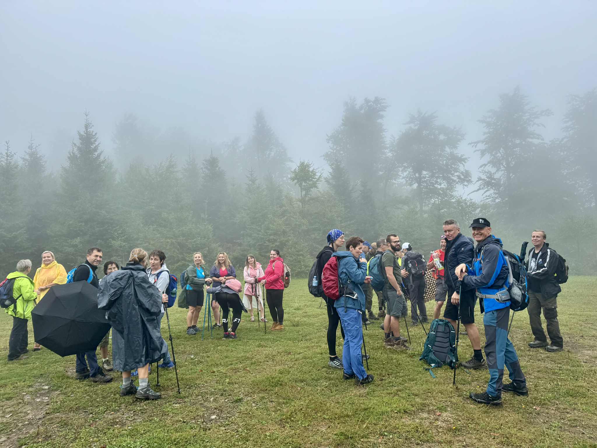 Sobota zapowiada się pogodowo dość dobrze, a przed nami Magura Spiska i szlak: Vyšné Ružbachy – Veterný Vrch – Sovia poľana – Vyšné Ružbachy. Na terenie uzdrowiska podziwiamy kilka uroczych szwajcarskich domków, a także imponujący Biały Dom w otoczeniu szpetnych socjalistycznych budynków. Taka wybuchowa mieszanka, z jednej strony ślicznie, z drugiej przaśnie i paskudnie. Jednak największą atrakcją bez wątpienia jest trawertynowe jeziorko Krater, którego stała temperatura 23 stopnie zachęca do kąpieli, ale my wolimy góry i czerwony szlak. Szlak wiedzie początkowo lasem, więc nie widzimy niskich chmur, które zrobią nam niezły prysznic i zasłonią piękne panoramy opisywane przez przewodniki. No niestety, trzeba włożyć peleryny i mieć nadzieję na poprawę pogody. Na wierzchołku Wietrznego Wierchu dzielnie straż nad pagórem sprawuje ciosany niedźwiedź ze słowacką flagą. Wiatr nie wieje, humory dopisują, pomimo mżawki i gęstej mgły, przez którą nie dostrzegliśmy Tatr z wierzchołka. Zatem będziemy musieli tutaj jeszcze raz przyjść. Wracamy zielonym, a potem żółtym – podobno bardziej widokowym szlakiem, a im niżej tym bardziej pogoda się poprawia. No cóż, czasem słońce, czasem deszcz, jak w życiu. Magura Spiska poczeka, jeszcze tu wrócimy i nacieszymy oczy jej pięknem.