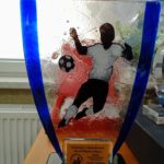 Z tej okazji Zarząd ST „Cyba” ufundował szklaną statuetkę, którą z podziękowaniami za zaproszenie i gratulacjami oraz życzeniami sportowych sukcesów wręczyłyśmy na ręce Prezesa LKS Błekitni.