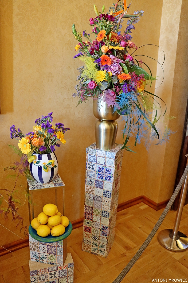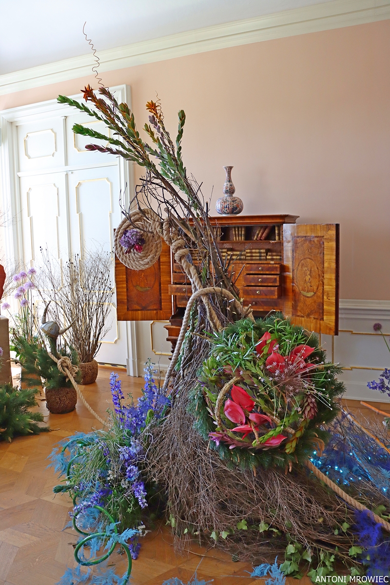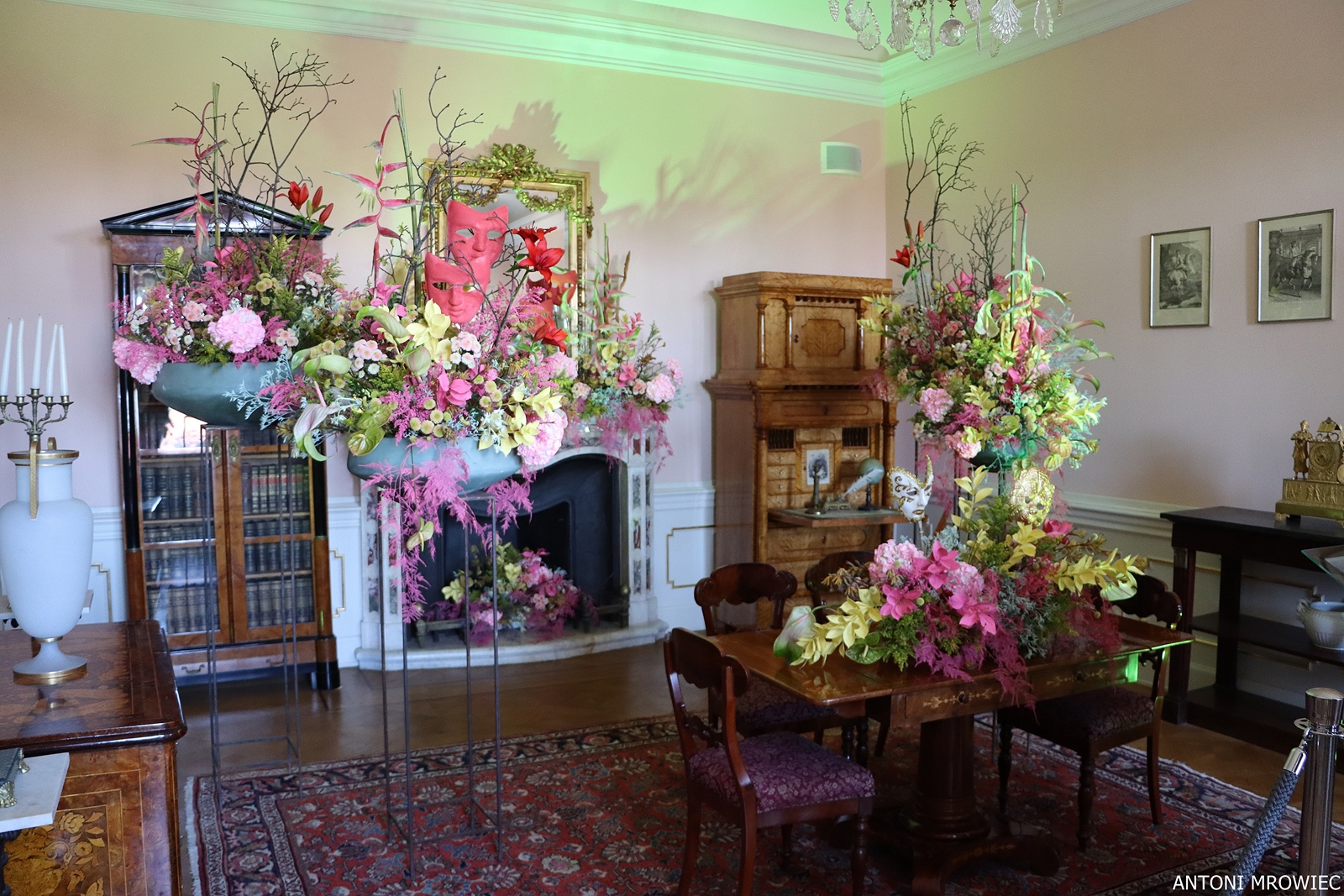 W maju 2024 roku, naszą cybową podróż na Dolny Śląsk, rozpoczęliśmy od zwiedzania Zamku Książ. W dniach od 1 do 5 maja, na Zamku odbywał się Festiwal Kwiatów i Sztuki. Przed Zamkiem, na korytarzach i w czterdziestu salach Zamku, wystawione były niesamowite aranżacje kwiatowe przygotowane przez trzy zespoły florystyczne tj: Stowarzyszenie Florystów Polskich, Międzynarodowy Instytut Florystyczny i Mistrzostwa Szkoła Florystyczna Macieja Krzusa. Oprócz tego, podczas zwiedzania odbywał się egzamin na mistrza florystyki, a wykonane prace egzaminacyjne (z dnia poprzedniego) były wystawione do oglądania. Antek, czyli nasz cybowy mistrz fotografii, odwalił kawał dobrej roboty fotografując te cuda i publikując je na facebooku. Z przyczyn technicznych, nie mogłem tego wszystkiego umieścić w sprawozdaniu z wycieczki, dlatego przedstawiam Wam osobną galerię (tym razem nie zmniejszałem rozdzielczości) z aranżacji kwiatowych wystawianych w dniu 01.05.2024 r. na Zamku Książ. Formalnie dodam, że galerię Antka uzupełniłem o parę zdjęć Agaty i swoich.